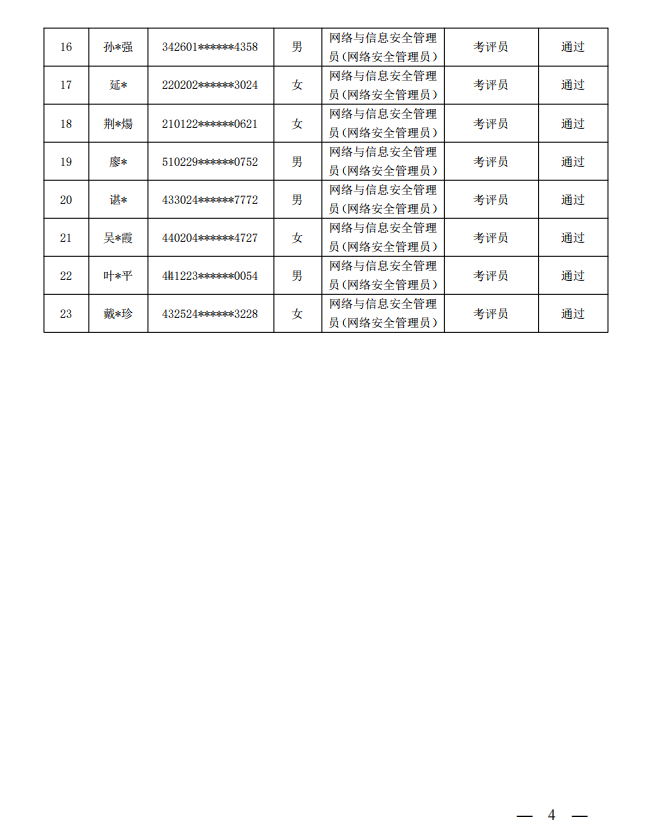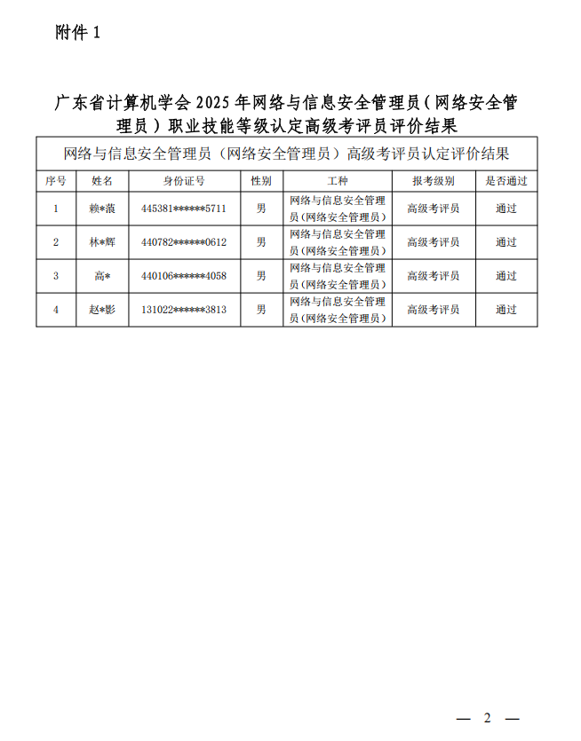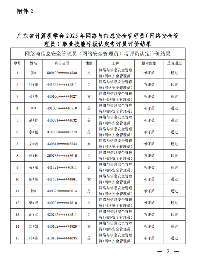 关于2025 年网络与信息安全管理员(网络安全管理员)职业技能等级认定考评员认定结果的通知