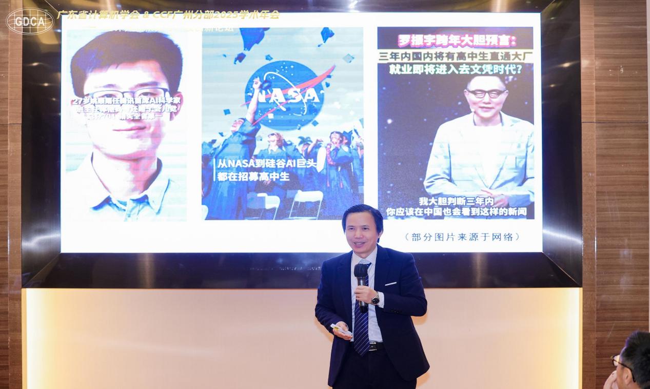 广东省计算机学会区块链专委会副主任委员、数字广东建设专家委员会委员、云宏人工智能研究院院长、广州南方学院特聘教授蓝云的主题分享《天使还是魔鬼?—“人工智能+区块链”背景下的新时期教育、学习机遇与挑战》结合27岁姚顺雨,出任腾讯首席 AI 科学家;美国硅谷大厂年薪17万美金,招高中生……等热点,认为“人工智能+区块链”背景下,新技术对各级党政机构、企事业单位、高校、中小学的教育及学习带来了巨大机遇与挑战,他从现实、问题、对策与趋势等角度阐述。近年来,蓝云为100多家单位深入讲解大数据、区块链和DeepSeek原理及应用特点,总培训人数超30万人,广受赞誉,被誉为“AI金牌讲师”。