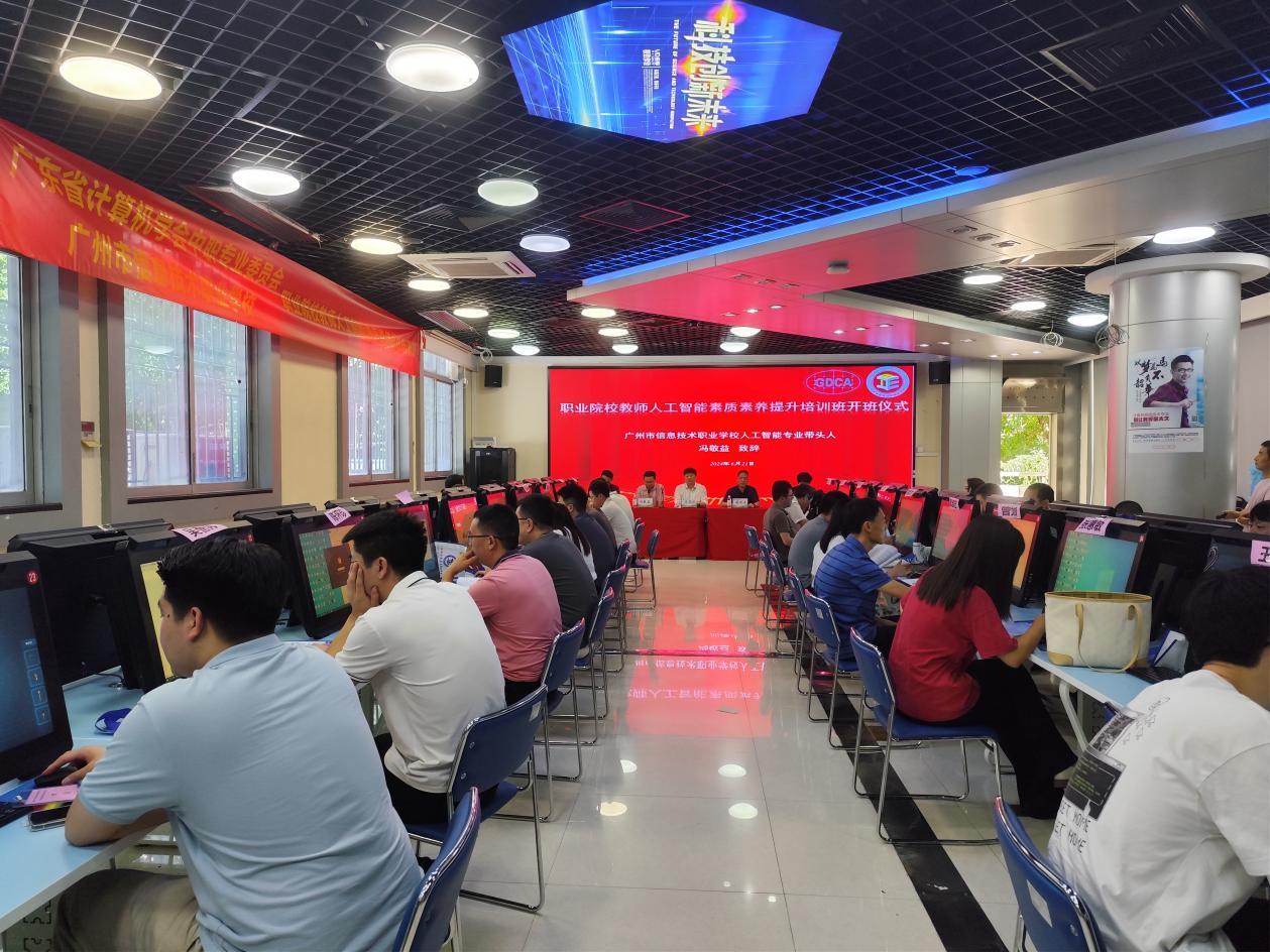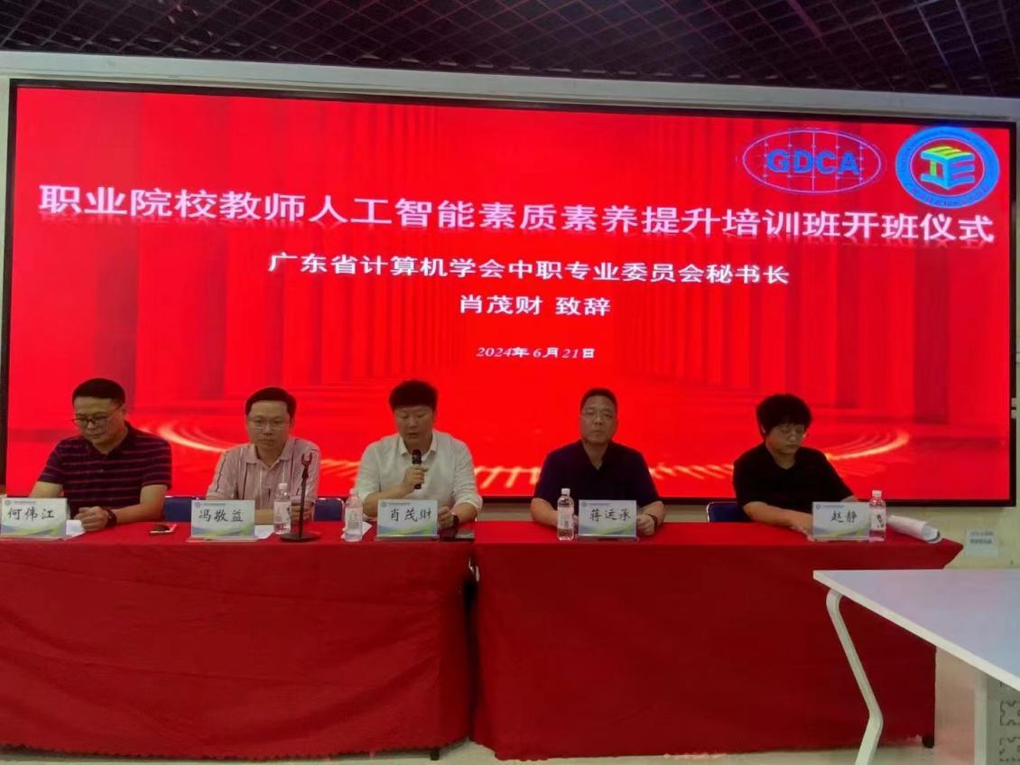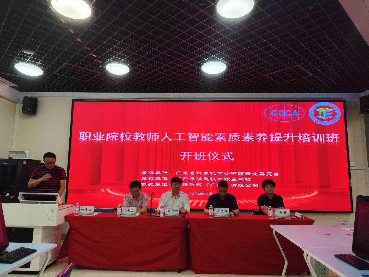 随着新一轮科技革命和产业变革向纵深演进,人工智能正逐步成为推动社会进步的新引擎。为了更好的推动中职教育改革和发展,提升中职教师人工智能素质素养, 6 月 21 日-23 日,由广东省计算机学会中职专业委员会主办,广州市信息技术职业学校承办,荔峰科技(广州)有限公司协办的“职业院校教师人工智能素质素养提升培训班”在广州市信息技术职业学校(下塘西校区)隆重举行。本次培训班旨在让各位教师深入了解人工智能如何赋能职业教育,掌握相关的教学方法和技能,提升自身的人工智能素质素养,从而更好地适应和推动职业教育的发展。来自全省近30余所院校的40余位教师参加了本次培训。