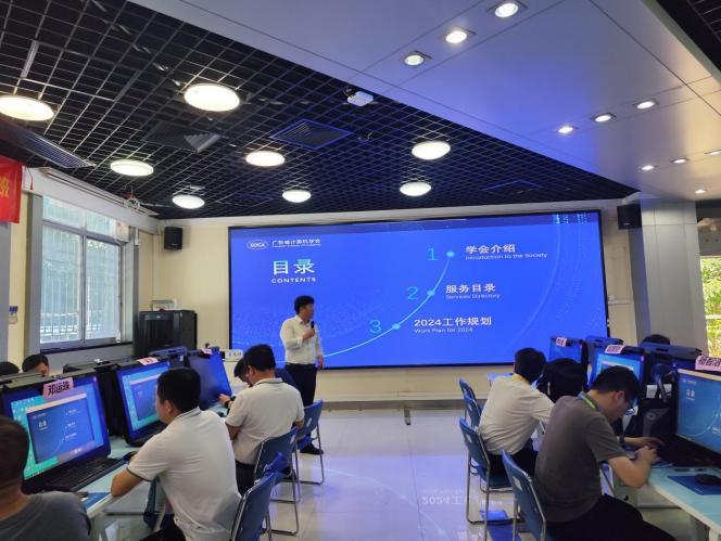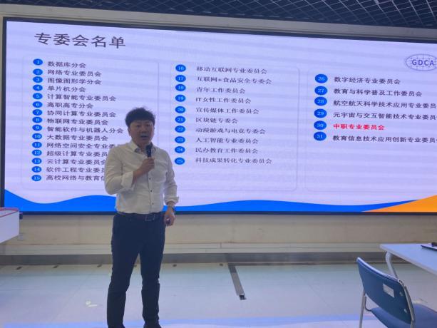会议伊始,由广东省计算机学会中职专业委员会秘书长肖茂财作工作报告。肖秘书长在报告中重点阐述了广东省计算机学会中职专业委员会及其服务领域,详尽介绍了中职专委会是如何赋能中职教育的、如何为师生的发展和成长提供全方位的支持和服务发展;此外,还预告了中职专委会接下来的一些活动预告,如东莞市人工智能专业建设研讨会、广东省大数据专业发展研讨会、职业教育如何赋能新质生产力人才培养论坛等活动。他表示未来将携手与更多职业院校及老师共同推进中职专委会在计算机方向的发展,为我省中职教育的繁荣和发展做出更大的贡献!