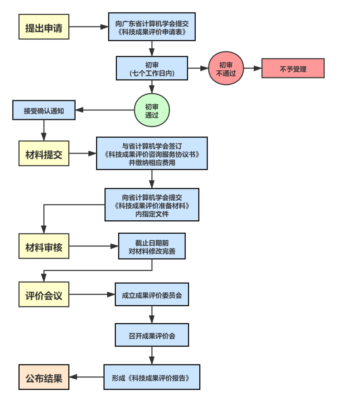 1. 项目完成单位向广东省计算机学会提交《科技成果评价申请表》(附件处提供下载)。
