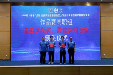 在典礼上,主持人宣读了本科组获得一等奖、二等奖、三等奖、单项奖和优秀展示奖的作品和学校,并由各位教授进行颁奖。