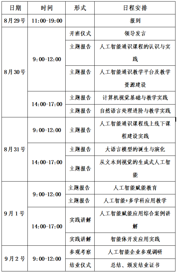 本次研修班以《人工智能通识课教学实践》为主题,旨在帮助不同专业背景的本科及职业院校教师掌握人工智能思维与应用能力,提升在课堂中开展人工智能素养教育的能力与水平。